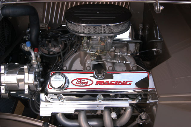 Pete and Jake's Chassis with Super Bell Axle and Ford 9" rear with Wilwood brakes and Foose 17" and 18" wheels. Ford Motorsports stroked 351 and electronic AOD trans. Henry Ford all steel body and fenders with smooth running boards. Filled roof and flushmount windshield. Ultraleather interior with Mustang door handles incorporated into door panels. Hidden Audio stereo.