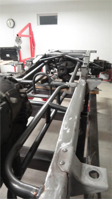 Robin Greenhagen's 1961 Duramax Dually it has a grain truck chassis shortened 34" total. It has a 2008 Duramax with Allison 2 wheel drive transmission and a dually rear end of the same vintage as the motor. Vintage Air & Flaming River tilt column.
